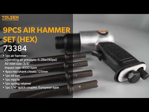 Tolsen 9pcs Air Hammer Set ( Hex ) Kit w/ Case (4500bpm) Model:73384